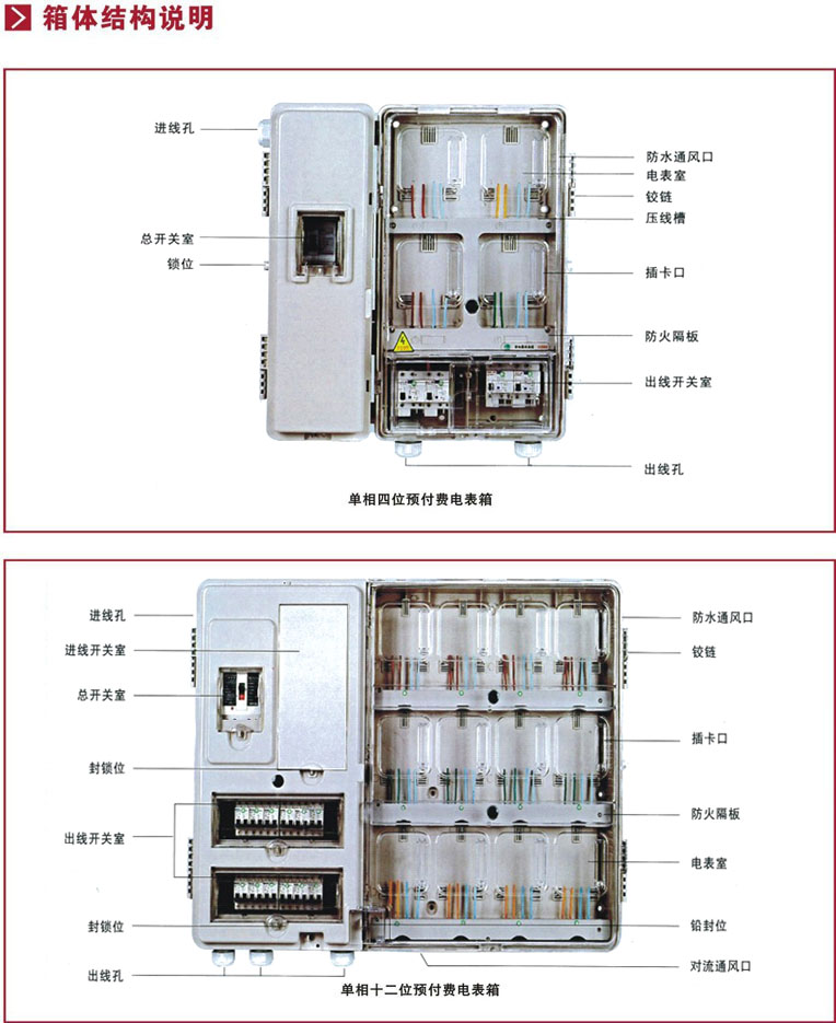 >本產品采用透明設計,透明材料的采用不僅直觀,而且可以及時的發現表箱內的各類異常現象,提前排除用電中的安全隱患,真正達到用電安全,預防為主的宗旨。